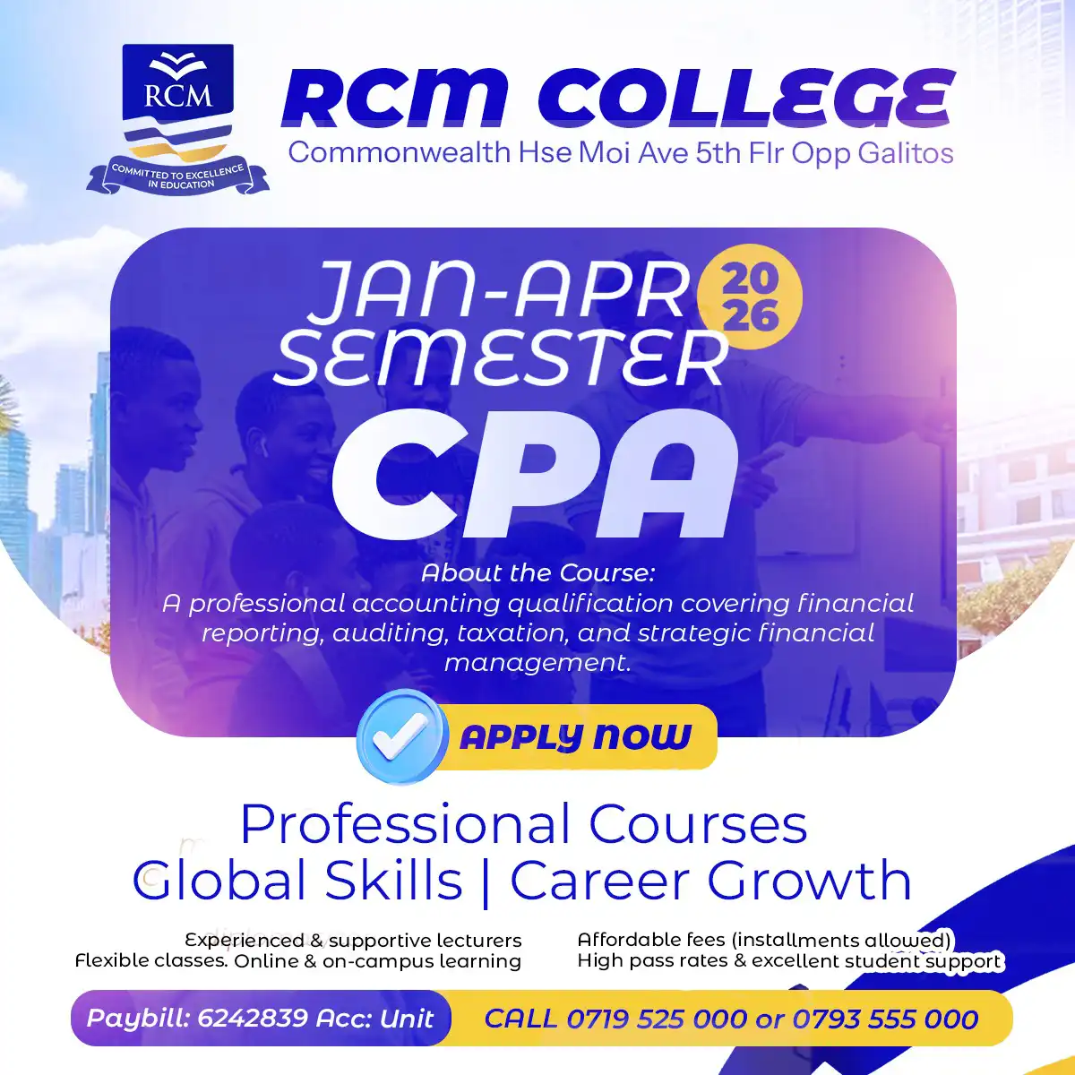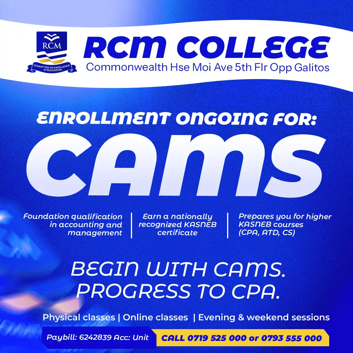 Whether you are starting your KASNEB journey or continuing to the next level, RCM Online College gives you the academic support and credibility you need to succeed.